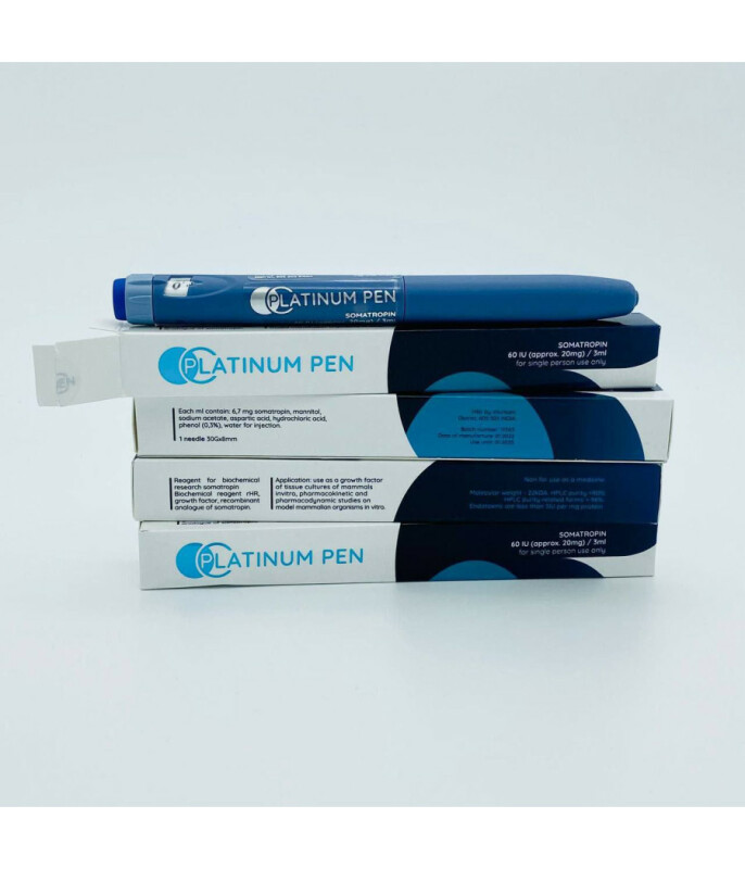Купить Гормон роста Platinum Pen (Платинум Пен)Гормон роста Platinum Pen используется в качестве минерально-питательного комплекса, предназначенного для улучшения результатов спортсменов, занимающихся бодибилдингом. В основе препарата находится соматропин. Благодаря его использованию, мышцы бодибилдеров приобретают лучшую форму за сжатый период времени. На протяжении всего срока применения гормона наблюдается ускорение таких процессов внутри организма, как гипертрофия и гиперплазия. Также спортсмен замечает, как жировые ткани сжигаются быстрее.Уникальный состав препарата позволяет его называть одним из самых мощных антикатаболитических средств, главной задачей которого является увеличение скорости выработки протеинов. При регулярном приеме Platinum Pen наблюдается укрепление скелета и ускорение процессов роста костных тканей. Суставы и связки также становятся более активными и подвижными. Купить Платинум Пен можно на сайте интернет-магазина.Производство препаратаСредство является разработкой индийской компании с мировым именем Платинум Фарма, которая давно заняла лидирующие позиции в рейтинге организаций, занимающихся производством продукции для бодибилдеров. Все товары компании, которые поступают на мировой рынок, имеют такие характерные особенности:высокое качество и гарантированная безопасность для сохранения здоровья спортсменов;грамотно подобранный химический состав, который включает в себя синтетический гормональный элемент, отвечающий за ускорение процессов выработки белковых соединений, а также предотвращает их распад. Такая особенность позволяет добиваться поставленных целей в короткий промежуток времени;удобство применения за счет правильной формы выпуска (ручка-шприц имеет дозировку 20 мг).Компания выпускает большое количество различных препаратов, которые совместимы между собой и позволяют добиться хороших результатов гораздо быстрее. Главное, следовать инструкции во вложении.Как принимается препарат?Platinum Pen на сайте магазина представлен в форме автоматической ручки-шприца, поэтому начать его применение под силу даже начинающему бодибилдеру, который пока не умеет делать уколы. Спортсмену понадобится выполнить следующий алгоритм действий:открыть упаковку;выбрать дозировку и вставить новую иглу;уколоть «шприцом» в нужной зоне, пользуясь для этого кнопкой, расположенной на корпусной части.В рекомендациях указано, что лучше всего принимать Platinum Pen в первой половине суток, когда в крови зачастую наблюдается самый маленький уровень глюкозы Проще всего сделать инъекцию сразу после сна, когда до завтрака остается полчаса. Для определения нужной дозировки лучше обратиться к специалисту. Иногда его назначают в лечебных целях. Но при неправильном применении могут наблюдаться такие побочные эффекты, как отечность тканей, гипертония, боль в мышцах и суставах, повышенное образование газов в кишечнике и пр. Также фиксируются первые признаки диабета и сердечной недостаточности.
